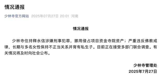 少林寺住持释永信因涉嫌刑事犯罪而受到关注,具体指控包括挪用和侵占项目资金及寺院资产。此外,他还被指责严重违反佛教戒律,长期与多名女性保持不正当关系,并育有私生子。