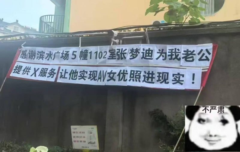 横幅一拉,全区出名,这下整个小区都知道这对歼夫银妇了