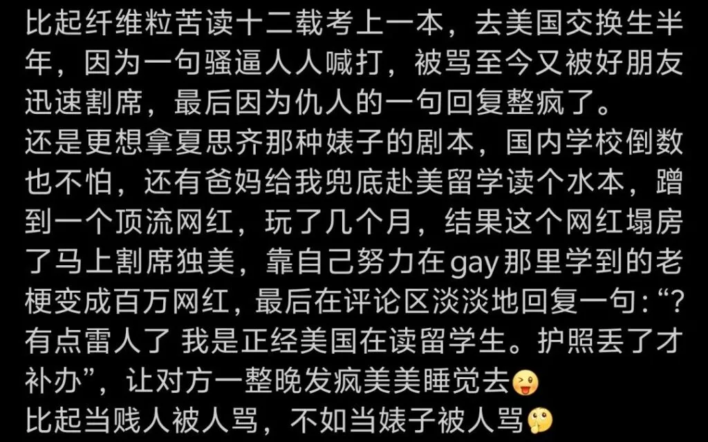 纤维粒的“厌女黑历史”:早年用“婊子”调侃女性运动员,如今却晒《第二性》读书笔记自证“女权进步”。心理学博主分析:“他的道歉像AI生成的道德忏悔录”。