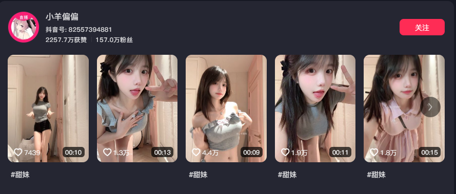 凭借清纯的脸庞与火辣的身材,她吸引了无数粉丝。在抖音的作品中,她的内容往往走在边缘,双眼透出灵动的神采,再加上那甜美的笑容,令人难以抗拒。随着尺度的进一步突破,她的作品更是引人注目,令人目不暇接。
