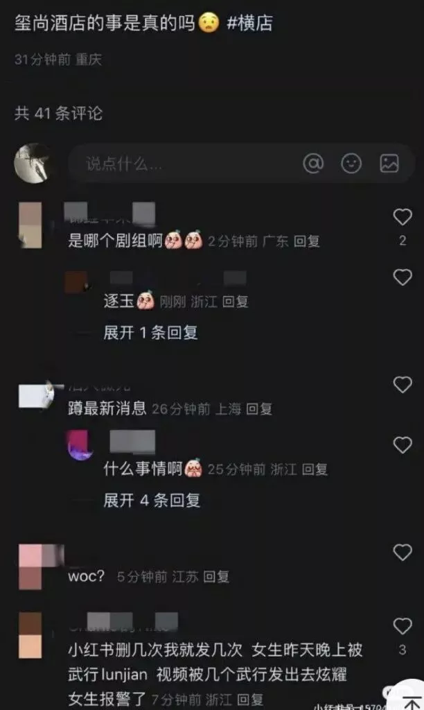 横店影视城再度引发热议,一名年轻女性报警称在《逐玉》剧组遭到武行集体性搔扰。她在举报中提到了多位涉事人员,包括张凌赫和田曦薇(《逐玉》),以及周柯宇和徐若晗(《一枕春华》)。根据网络流传的信息,这名女性最初是自愿与几名武行发生亲密关系,但随后她发现自己被录制视频并散布,这使她感到愤怒和无奈,因此选择报警。