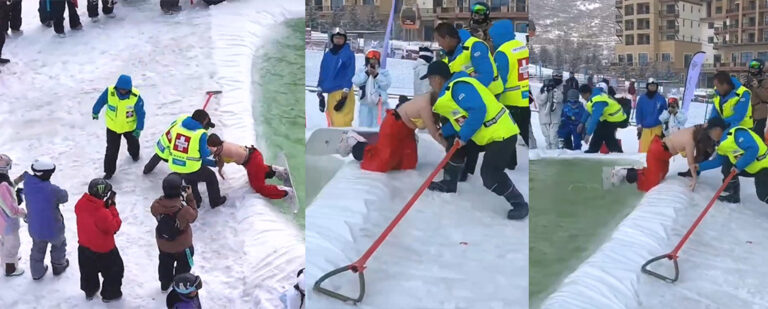 万龙滑雪场,一位身着比基尼的滑雪游客,在雪场挑战项目“猛龙过江”上,因为穿着大胆、暴漏又因为匈部实在过于饱满,在挑战失败爬出水面时,角度与拍摄问题,造成错觉,一度一位这位美女的匈前曝光,导致网络各种求种不断。