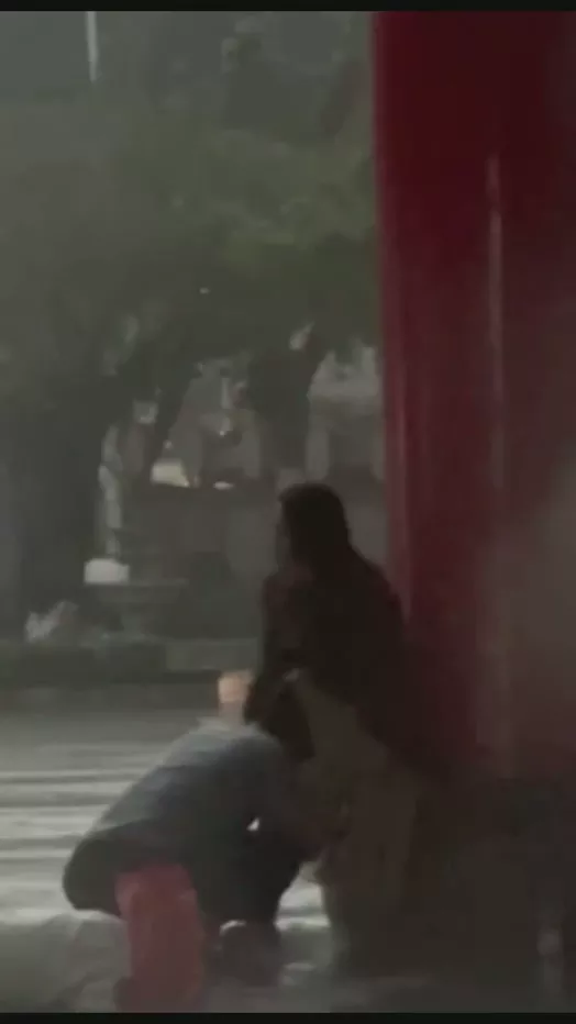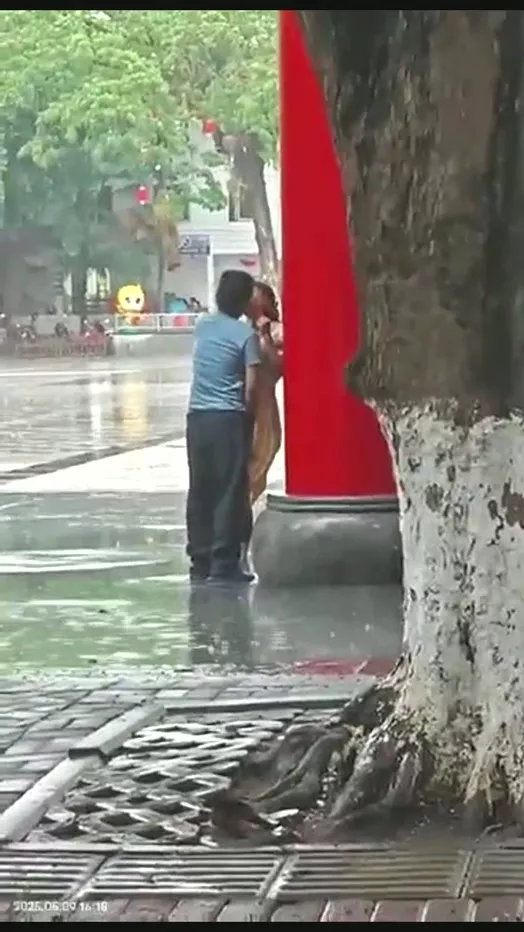 雨后爱情故事?海南五指山三月三广场情侣雨中野战好生猛