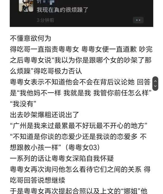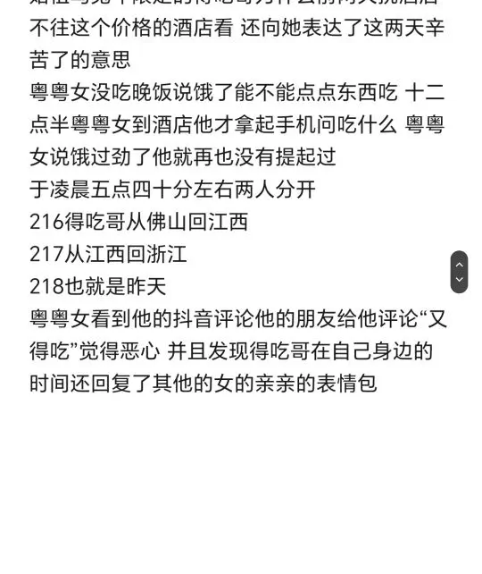 简要:与粤粤女掰扯半年确定了关系但出轨已知浙江1号和浙江2号以谈恋爱名义来广州与粤粤女发生关系后转头就和浙江2号去了上海约会得吃哥与粤粤女相识于2022年年末于2023年8月底开始常聊至2024年2月18日 在这之前只会偶尔联系加朋友圈互动